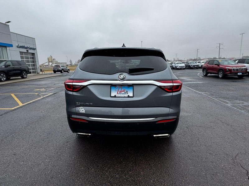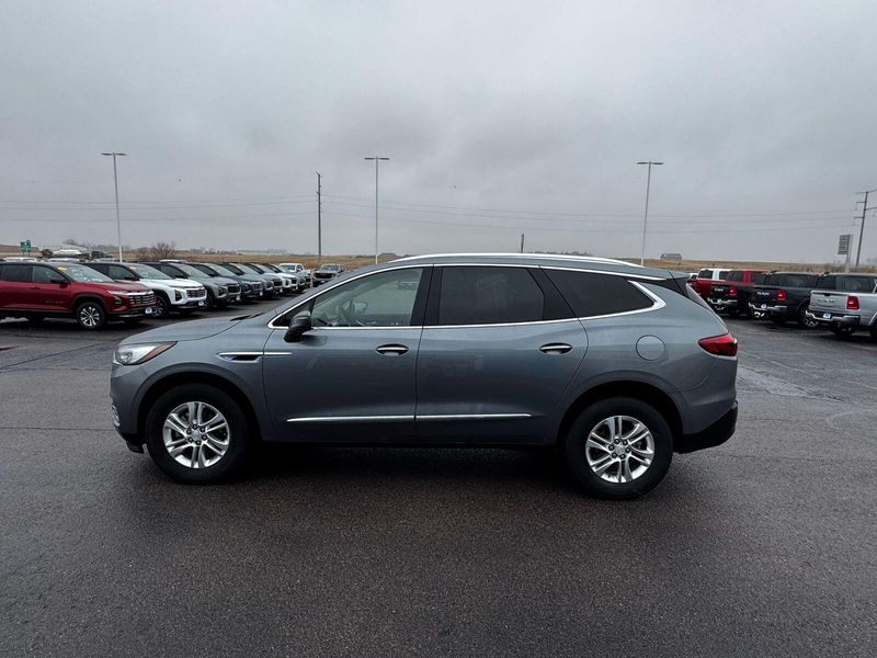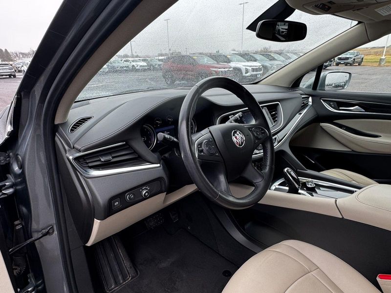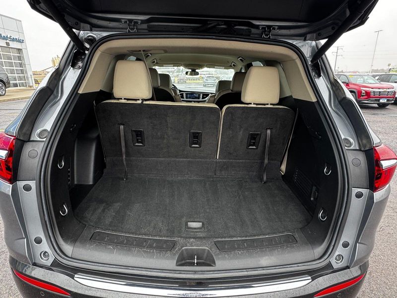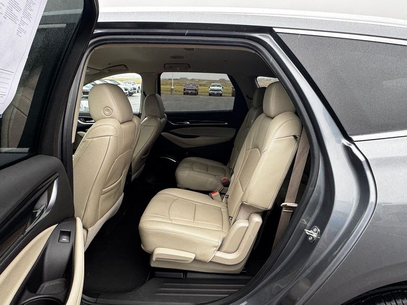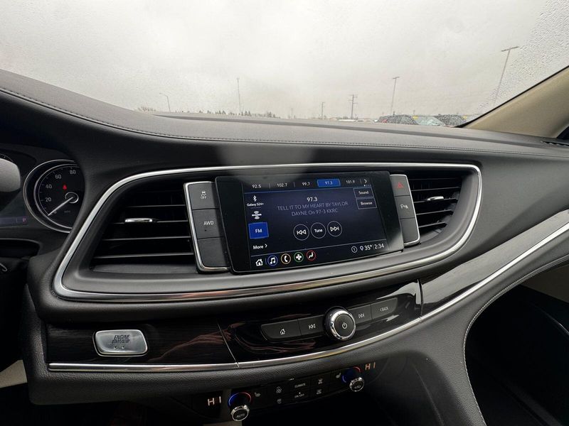 Front Mounting License Plate Bracket Package, Preferred Equipment Group 1SL, AWD, 18'' Painted Aluminum Wheels, 3.49 Axle Ratio, 3rd row seats: split-bench, 4-Wheel Disc Brakes, 6 Speakers, 6-Speaker Audio System Feature, 7-Passenger Seating, ABS brakes, Air Conditioning, Alloy wheels, AM/FM radio: SiriusXM with 360L, Apple CarPlay/Android Auto, Auto High-beam Headlights, Auto-dimming door mirrors, Auto-dimming Rear-View mirror, Automatic temperature control, Brake assist, Bumpers: body-color, Compass, Delay-off headlights, Driver door bin, Driver vanity mirror, Dual front impact airbags, Dual front side impact airbags, Electronic Stability Control, Emergency communication system: OnStar and Buick connected services capable, Four wheel independent suspension, Front anti-roll bar, Front Bucket Seats, Front Center Armrest, Front dual zone A/C, Front reading lights, Fully automatic headlights, Garage door transmitter, Heated door mirrors, Heated Driver & Front Passenger Seats, Heated front seats, Illuminated entry, Leather steering wheel, Low tire pressure warning, Occupant sensing airbag, Outside temperature display, Overhead airbag, Overhead console, Panic alarm, Passenger door bin, Passenger vanity mirror, Perforated Leather-Appointed Seat Trim, Power door mirrors, Power Driver Lumbar Control Seat Adjuster, Power driver seat, Power Liftgate, Power Passenger Lumbar Control Seat Adjuster, Power passenger seat, Power steering, Power windows, Premium audio system: Buick Infotainment System, Radio data system, Radio: Buick Infotainment System AM/FM Stereo, Rear air conditioning, Rear anti-roll bar, Rear Parking Sensors, Rear reading lights, Rear window defroster, Rear window wiper, Remote keyless entry, Roof rack: rails only, Security system, SiriusXM w/360L, Speed control, Speed-sensing steering, Spoiler, Steering wheel mounted audio controls, Tachometer, Telescoping steering wheel, Tilt steering wheel, Traction control, Trip computer, Turn signal indicator mirrors, Variably intermittent wipers, and Voltmeter.