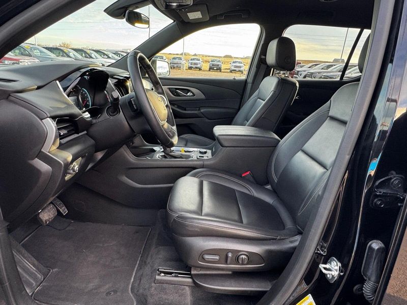 Front License Plate Bracket Mounting Package, Preferred Equipment Group 3LT (Heated Driver & Front Passenger Seats), AWD, 3.49 Axle Ratio, 3rd row seats: split-bench, 4-Wheel Disc Brakes, 6 Speakers, 6-Speaker Audio System Feature, 6-Way Power Front Passenger Seat, 8-Way Power Driver Seat Adjuster, ABS brakes, Air Conditioning, Alloy wheels, AM/FM radio: SiriusXM with 360L, Apple CarPlay/Android Auto, Auto High-beam Headlights, Automatic temperature control, Black Roof Rails, Brake assist, Bumpers: body-color, Compass, Delay-off headlights, Deleted 3 Years of Remote Access, Driver door bin, Driver vanity mirror, Dual front impact airbags, Dual front side impact airbags, Electronic Stability Control, Emergency communication system, Exterior Parking Camera Rear, Four wheel independent suspension, Front anti-roll bar, Front Bucket Seats, Front Center Armrest, Front dual zone A/C, Front Passenger 2-Way Power Lumbar, Front reading lights, Fully automatic headlights, Garage door transmitter, Heated door mirrors, Heated front seats, Heated steering wheel, Illuminated entry, Leather steering wheel, Leather-Appointed Seat Trim, Low tire pressure warning, Not Equipped w/Rear Park Assist (060), Occupant sensing airbag, Outside temperature display, Overhead airbag, Overhead console, Panic alarm, Passenger door bin, Passenger vanity mirror, Power door mirrors, Power Driver Lumbar Control, Power driver seat, Power Liftgate, Power passenger seat, Power steering, Power windows, Premium audio system: Chevrolet Infotainment 3 Plus, Radio data system, Radio: Chevrolet Infotainment 3 Plus System, Rear air conditioning, Rear anti-roll bar, Rear reading lights, Rear window defroster, Rear window wiper, Remote keyless entry, Security system, SiriusXM w/360L, Speed control, Speed-sensing steering, Spoiler, Steering wheel mounted audio controls, Tachometer, Telescoping steering wheel, Tilt steering wheel, Traction control, Trip computer, Turn signal indicator mirrors, Variably intermittent wipers, Voltmeter, and Wheels: 18'' Bright Silver-Painted Aluminum.